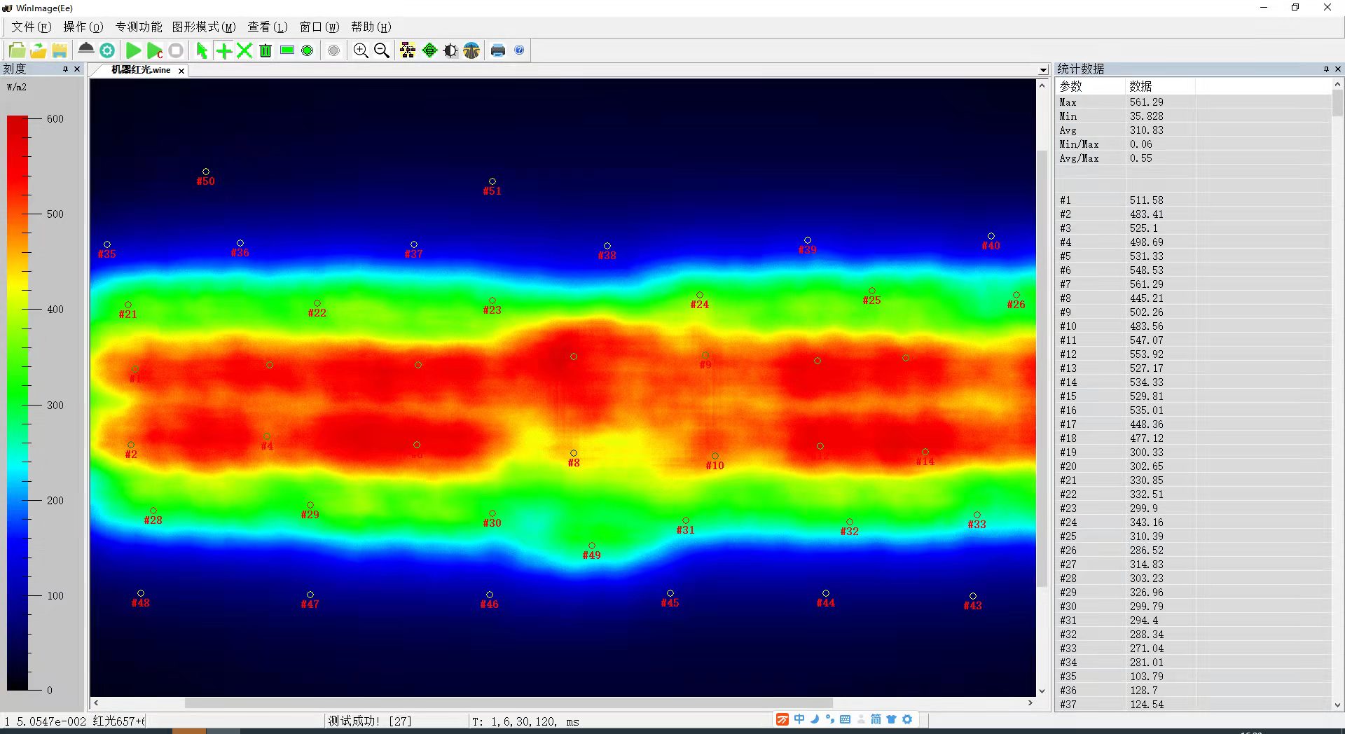 Regardless of the structured light pattern or the position, shape or size of the light spot, the radiometric solution of iris can automatically identify the point of interest for each light point, and output the irradiance data, maximum intensity, minimum intensity, uniformity and other data of each light point.